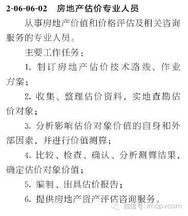 《職業(yè)分類大典》對(duì)評(píng)估專業(yè)人員類別定義:從事資產(chǎn)和資源狀況鑒定、價(jià)值估算和咨詢服務(wù)的專業(yè)人員。對(duì)各評(píng)估專業(yè)人員介紹分別為: